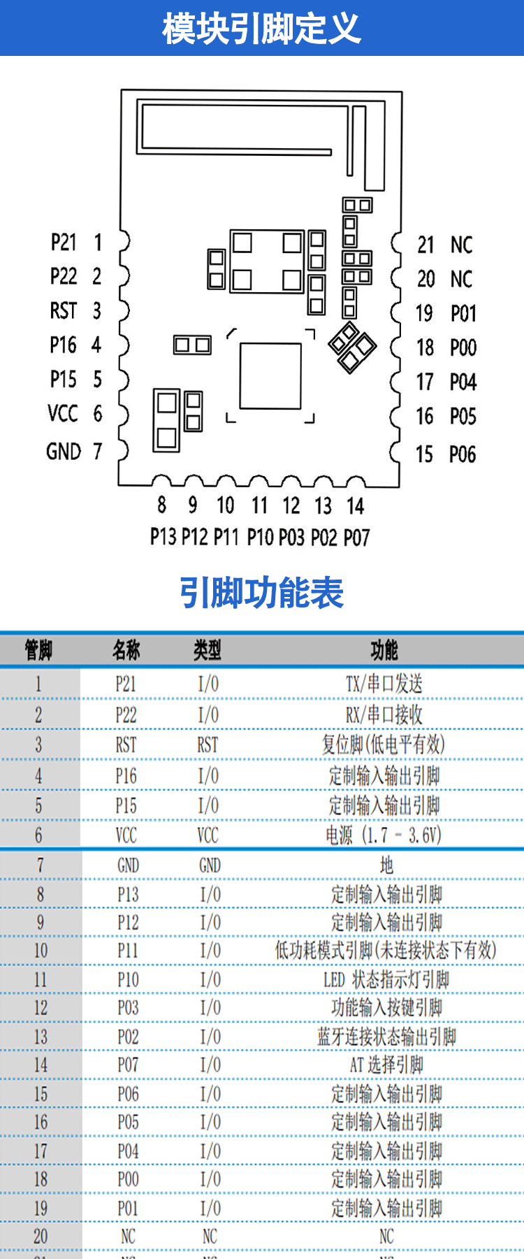 工作电压:2.0V ~3.6V MTU值:244字节