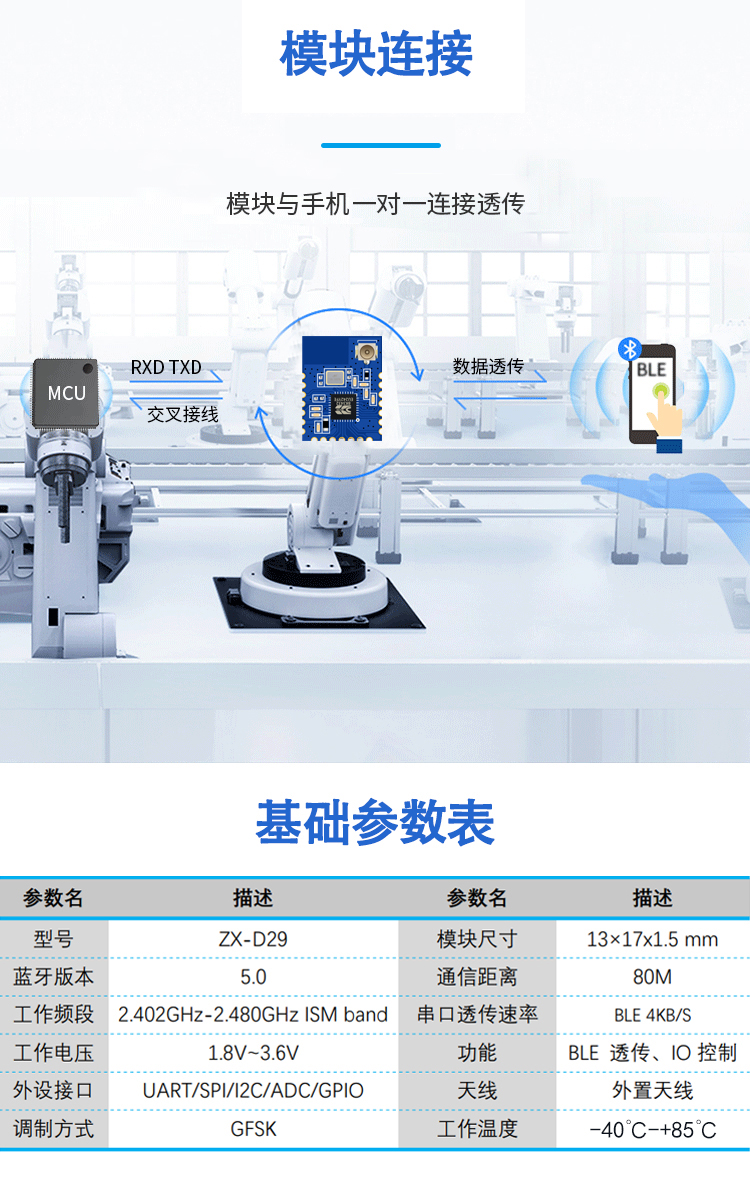 串口透明传输,无需任何蓝牙协议栈应用经验;