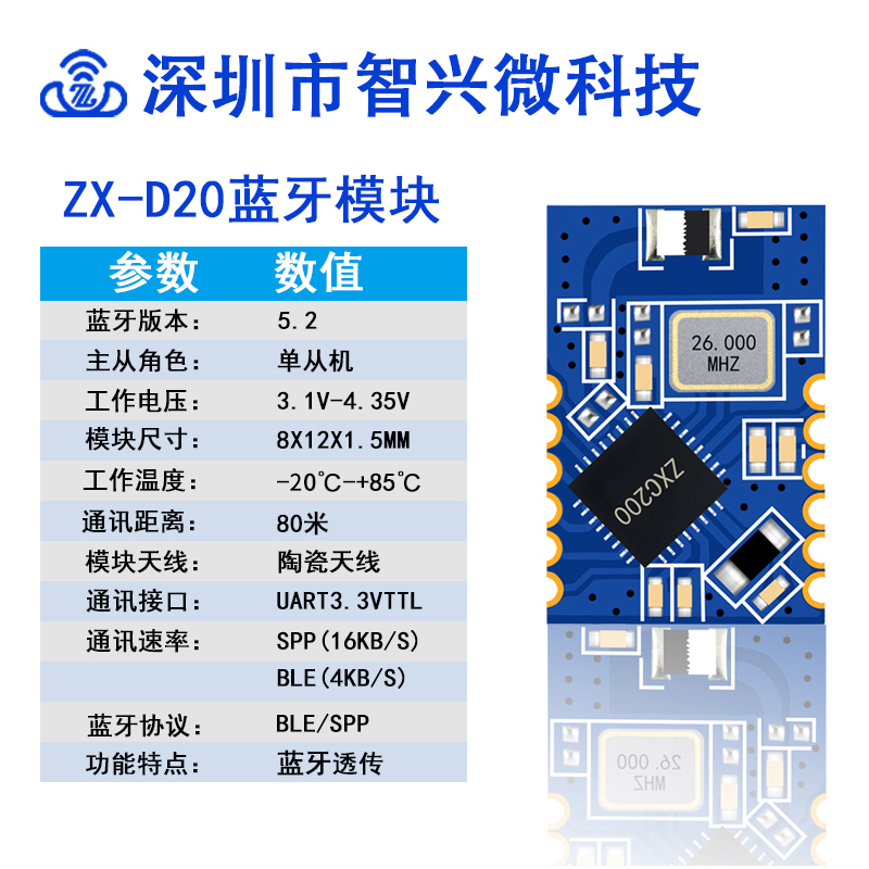 随着智慧医疗的快速发展,无线数据传输技术在医疗设备中扮演着越来越重要的角色。深圳市智兴微科技有限公司推出的ZX-D20双模蓝牙模块,凭借其低功耗、高稳定性、小尺寸等优势,已成为众多医疗仪器厂商的首选无线通信解决方案。 -