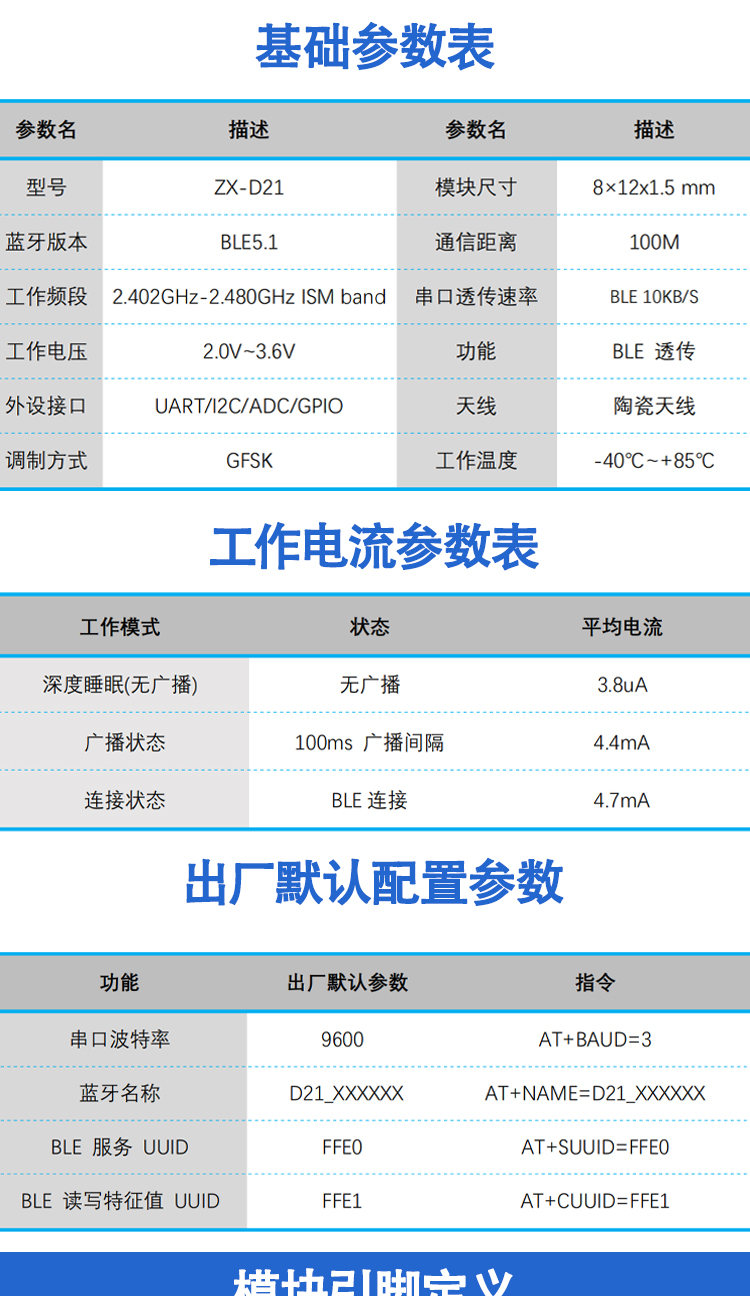 工作电压:2.0V ~3.6V MTU值:244字节